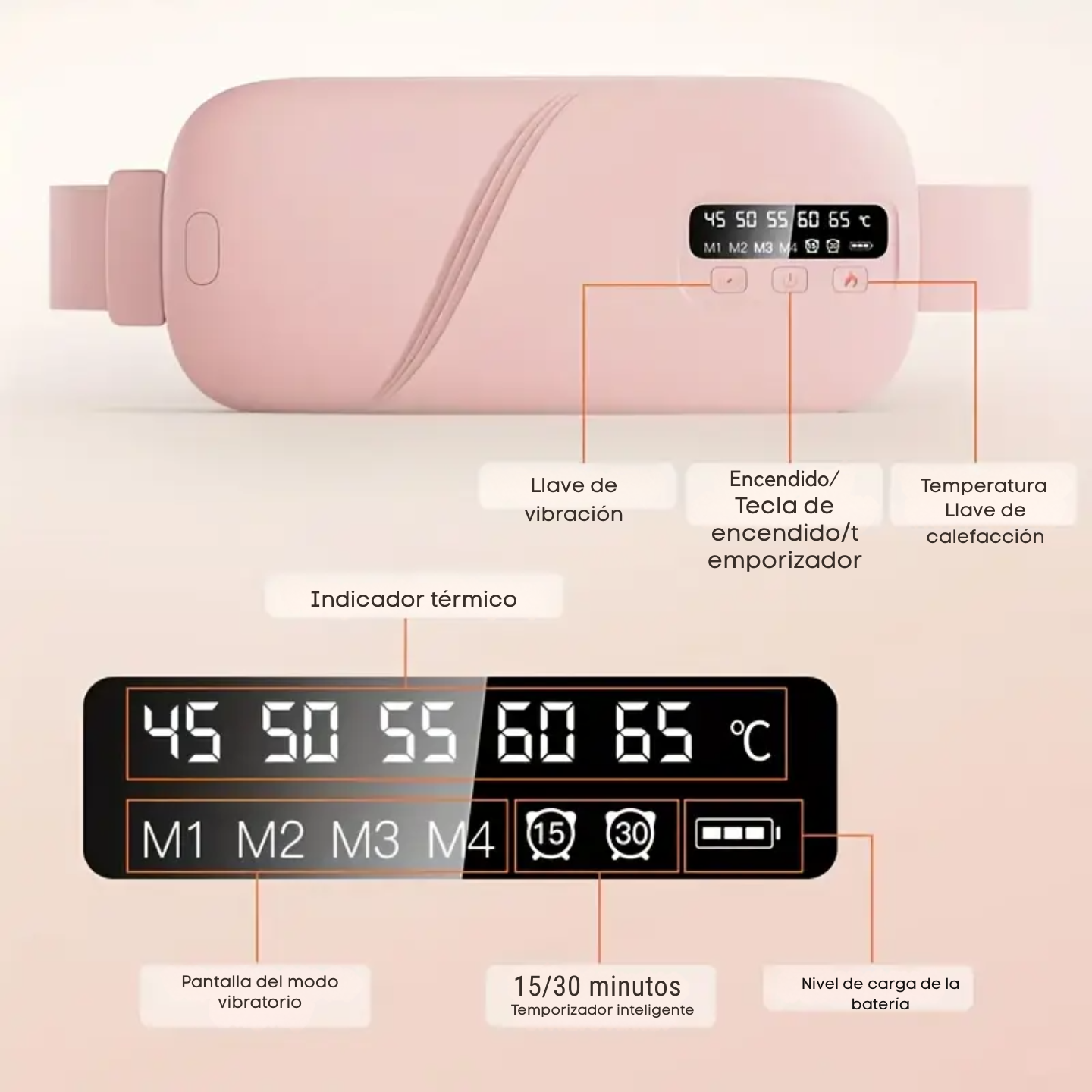 Solo colócalo en la zona baja del abdomen, selecciona el nivel de calor o